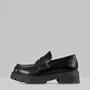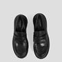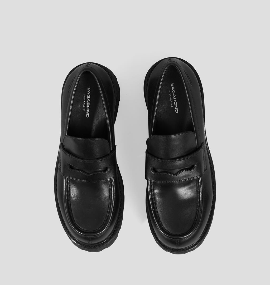 Cosmo 2.0 is the chunky version of classic penny loafers. The style is crafted from black leather with a contoured penny strap and moc-toe details framing the rounded toes. The solid rubber outsoles measure 45mm. Note: use a shoe horn to protect the heel-cap and further extend the shoe’s lifespan.