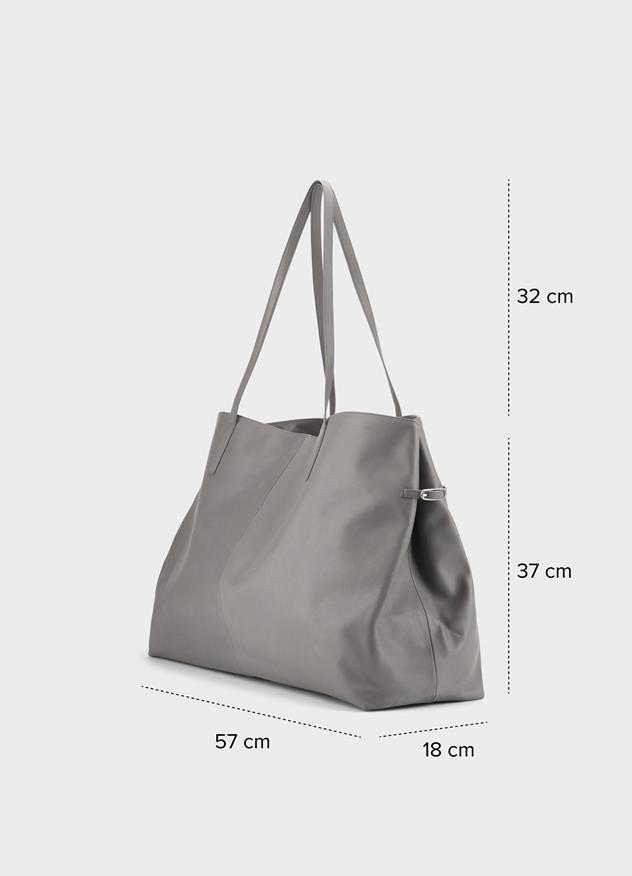 Cannes ist unsere Interpretation der klassischen Handtasche. Die Maxi-Version dieser Tasche ist unsere bisher größte und bietet viel Platz für all deine Essentials und mehr. Das Design ist aus grauem Leder gefertigt und verfügt über seitliche Schnallenverschlüsse, womit Größe und Form angepasst werden können. Cannes Maxi hat einen vertikalen Magnetverschluss für schnellen Zugriff auf deine Sachen.