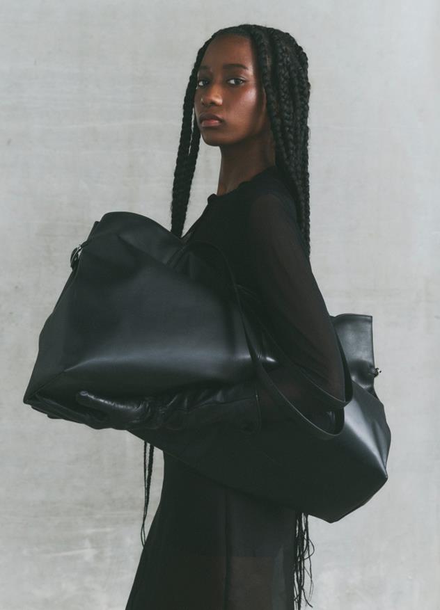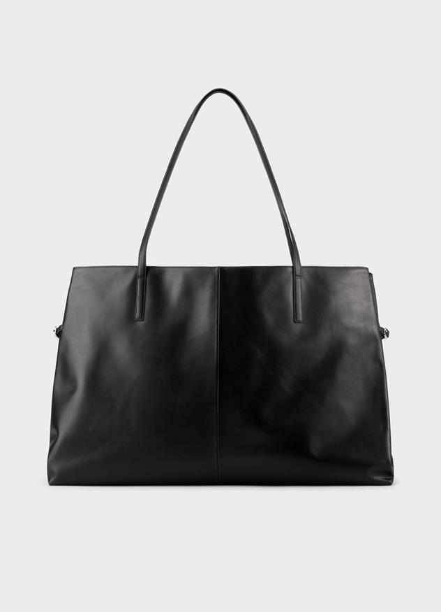 Cannes ist unsere Interpretation der klassischen Handtasche. Die Maxi-Version dieser Tasche ist unsere bisher größte und bietet viel Platz für all deine Essentials und mehr. Das Modell ist aus schwarzem Leder gefertigt und verfügt über seitliche Schnallenverschlüsse, womit Größe und Form angepasst werden können. Cannes Maxi hat einen vertikalen Magnetverschluss für schnellen Zugriff auf deine Sachen.