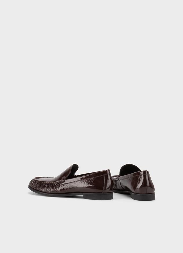 Brandi adopts a contemporary style, adding a modern touch to everyday shoes. The loafers are crafted from shiny, dark brown patent leather.