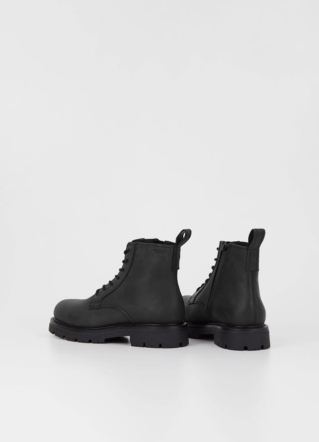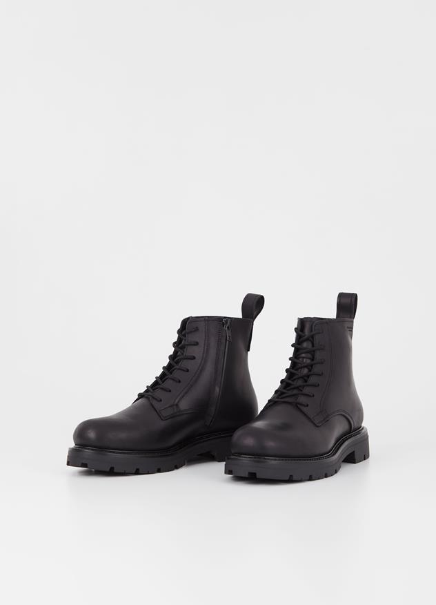 Cameron is een warm gevoerde veterlaars met een utility-look. De stijl is gemaakt van off-black, gevet nubuck en heeft een warme voering, een vetersluiting en een ritssluiting aan de zijkant. Met een ruige hak van 40mm.