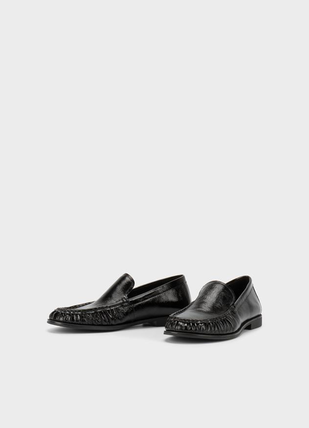 Brandi adopts a contemporary style, adding a modern touch to everyday shoes. The loafers are crafted from shiny black patent leather.