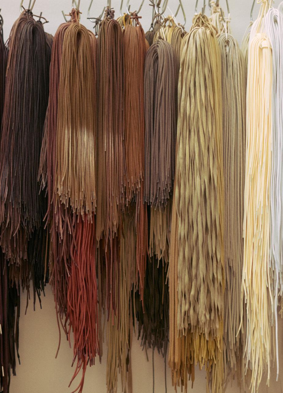 Většina našich výrobků je vyrobena z celozrnné kůže (full-grain), hlavně z hovězí, ale také z kozí, vepřové a ovčí. Tento materiál je měkký a pružný, což umožňuje vytvářet různé designy. Navíc používáme hladkou měkkou kůži na kožené podšívky a kožené stélky v naší obuvi.