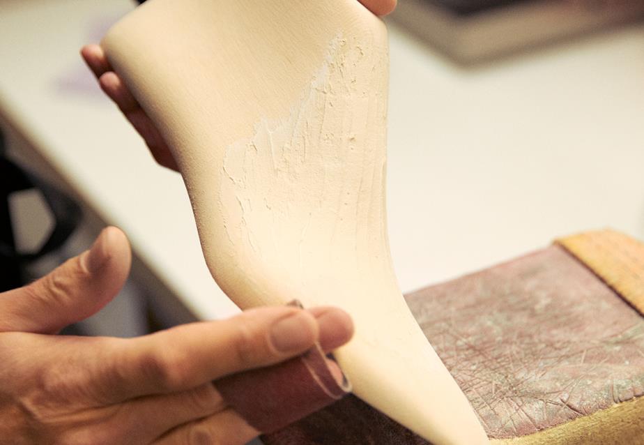 Unlike the common industry process, where designers send sketches to external suppliers, await prototypes, and alter the design through a back-and-forth exchange, our workshop does it all. “We create all prototypes here, from shoe last to finalised style”, Maria shares,