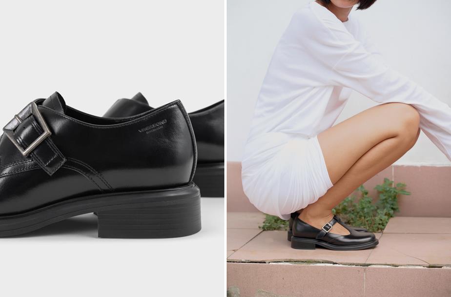 Moderne Mary Janes mit einem edgy Design. Ellis ist aus schwarzem Leder gefertigt und hat eine quadratische Zehenpartie. Futter und Innensohle sind aus chromfreiem Leder; ein verstellbarer Schnallenriemen rundet den Style ab.
