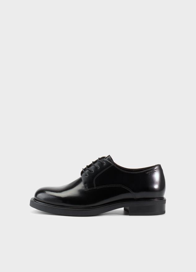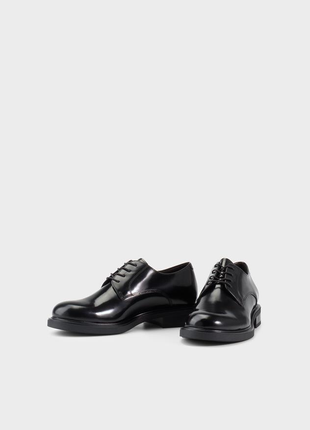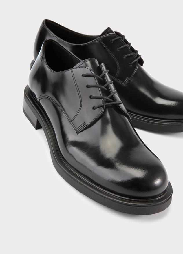 Edition Freya offers a fresh take on formal footwear. The softly rounded silhouette strikes a refined balance; dressy yet grounded. The derby shoe is crafted from polished black leather.