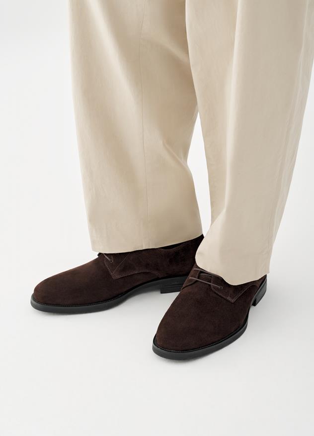 Classic derby shoes, perfect for dressy occasions. Mario is crafted from dark brown suede.