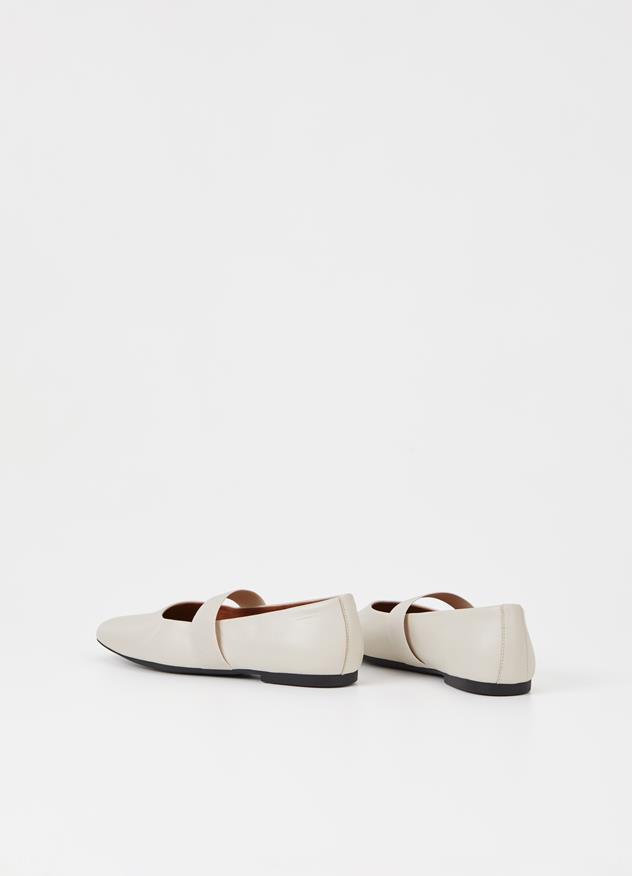 Jolin est un style décontracté de ballerines en cuir off-white, avec le bout arrondi et des brides élastiques sur le dessus. Le talon plat mesure 11 mm.