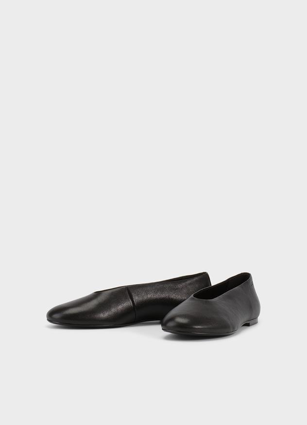 Aleya reimagines the modern flat with its high-cut upper and rounded toe shape. The ballet flat is crafted from black leather.