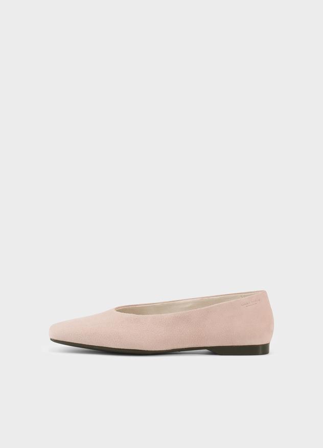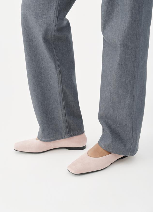 Un model foarte apreciat pentru farmecul său atemporal. Balerinii Delia sunt confecționați din piele întoarsă roz și prezintă vârf discret pătrat.