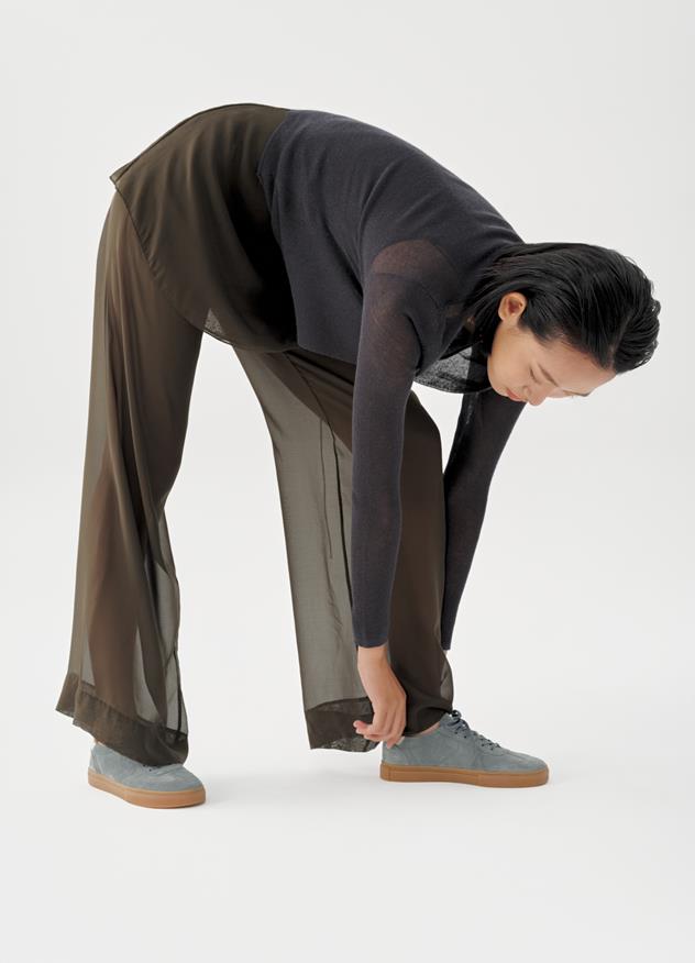 Cody är våra uppdaterade cupsole-sneakers. Ovandelen är i en dov, blå mocka med en kontrasterande häl i vitt skinn.
