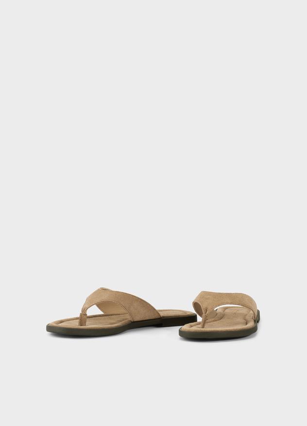 Zaida har en nätt profil, designad med vardagen i åtanke. Flip-floppen är tillverkad i sandfärgad mocka och har en skumfylld innersula för extra komfort.