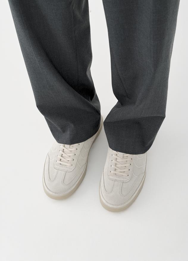 Leo kombinuje formálny štýl so športovým vzhľadom. Tieto minimalistické tenisky sú inšpirované hádzanárskou obuvou. Svetlosivý model je vyrobený zo semišu.