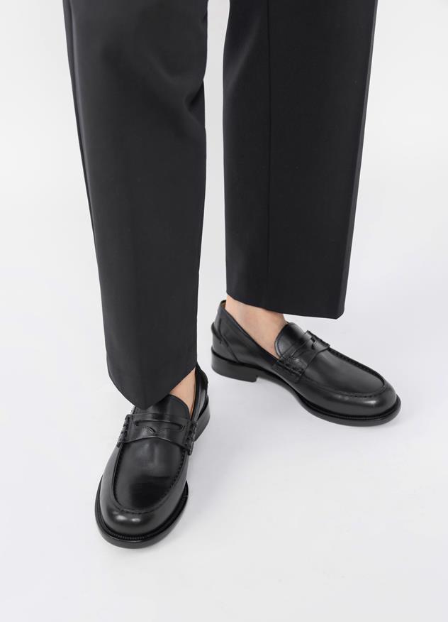 Steven is the everyday college loafer with a preppy appeal. The style is crafted from black leather and features a penny slot across the vamp, moc toe seams and a rounded toe shape. The low heels measure 28 mm. Details include leather lining.