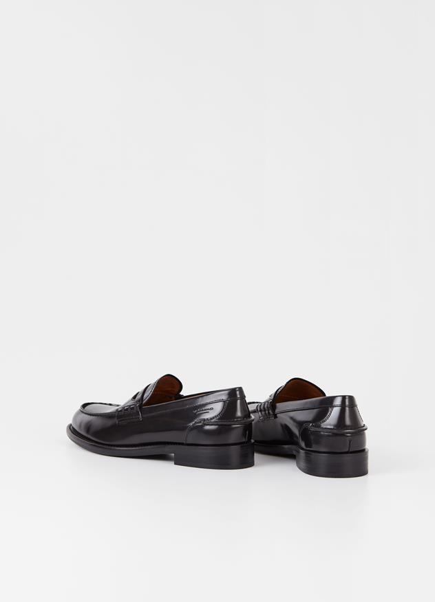 Steven is the everyday college loafer with a preppy aesthetic. The style is crafted from black polished leather, featuring a penny slot across the vamp, moc toe seams and a rounded toe shape. The low heels measure 28 mm. Details include leather lining.